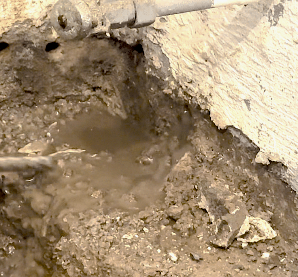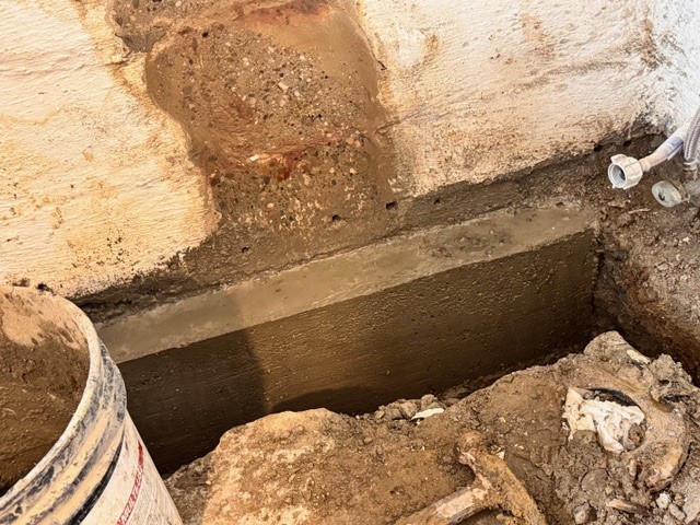 Sections of the foundation footer removed, compromising the home’s structural integrity
